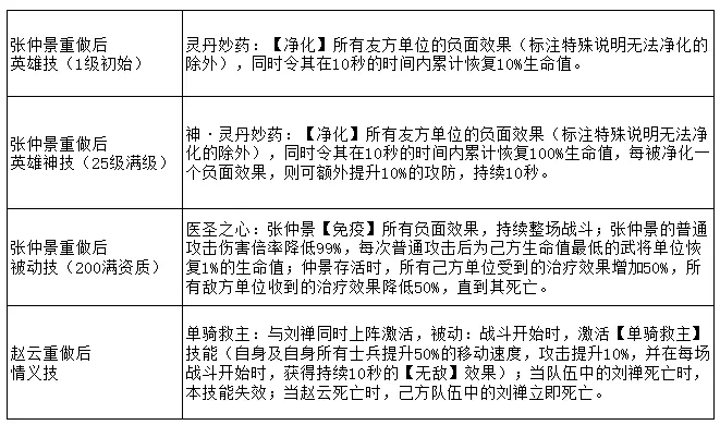 (武将详细内容可参考以下表格,最终结果以更新后为准)