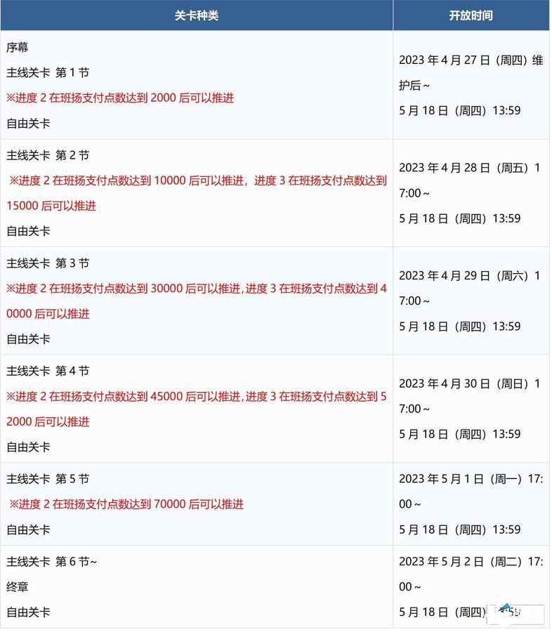 此外,活动主线关卡的开放需要一定量的班扬支付点数。