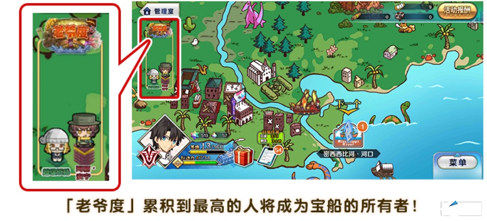 「老爷度」将根据剧情的推进增减,作为表示御主一方协助的超级班扬和竞争对手玛丽·安宁谁更适合当宝船的所有者的指标,还请配合剧情的展开享受吧。