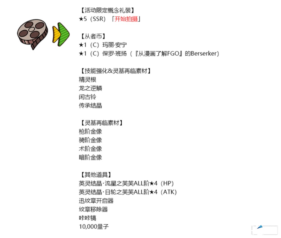 ※传承结晶、英灵结晶·流星之芙芙ALL阶★4(HP)、英灵结晶·日轮之芙芙ALL阶★4(ATK)只能在通关本活动后期开放的主线关卡后进行交换。