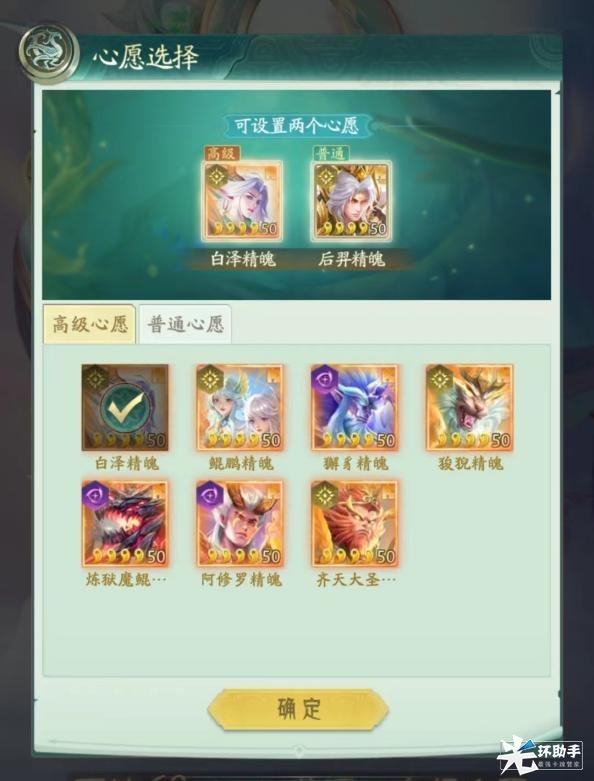 白泽祈愿可选择两个心愿,分别是普通心愿和高级心愿,心愿可以随时更换,祈愿达到一定次数后心愿奖励概率会得到一定提升。