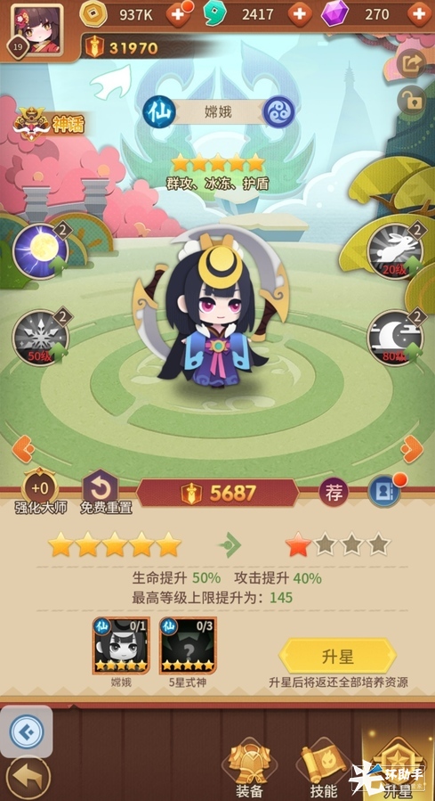 这时候若想继续提升式神的等级,我们就必须将式神进行升星,以解锁式神等级的最高上限。