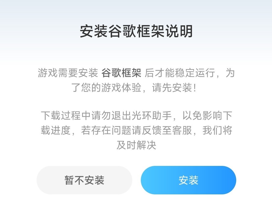 点击启动畅玩时,需要谷歌的游戏详情页下方将提示您需要安装谷歌框架: