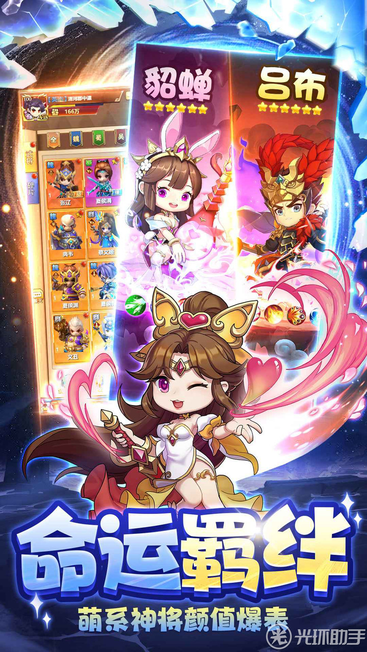 萌Q精致画面,满足你的审美要求,绿色放置游戏,摆脱时间困扰,随时嗨玩!战马技能,搭配个性策略组合,神将升级,模拟经营,红颜佳丽相作伴,构建有温度的三国世界。