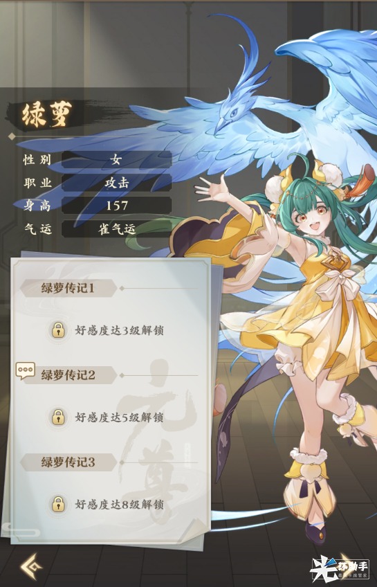 推荐理由:通过与【女性】源师共同上阵激活的列阵缘分,以及不俗的单体输出能力,绿萝可以在大部分体系内担任副C/辅助位置。