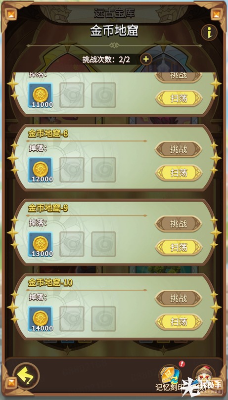 通过进行关卡挑战,参与活动,完成任务,达成成就等途径均可获取金币!而每日挑战远古宝库,是金币日常获取最主要且稳定的途径,大家不要错过哦。