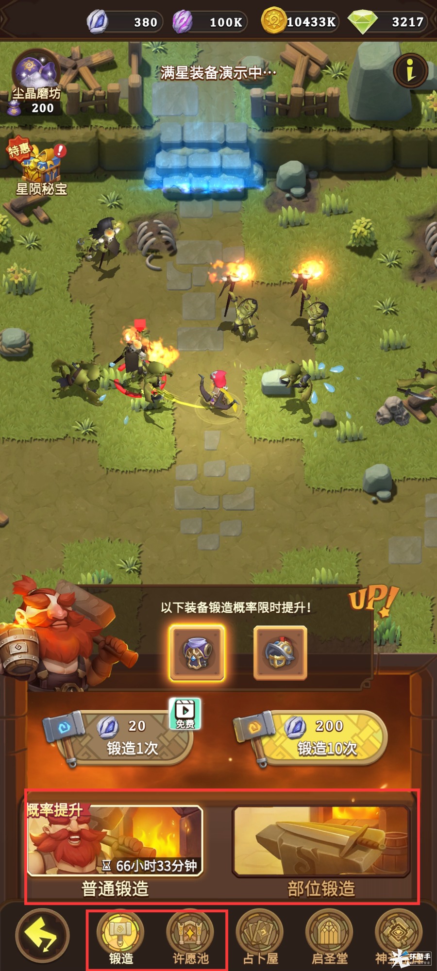 2.抽取:在【锻造】中抽取,也可以获得各类冒险装备,还可以定向抽取特定部位的装备;【许愿池】中可抽取职业套装装备。