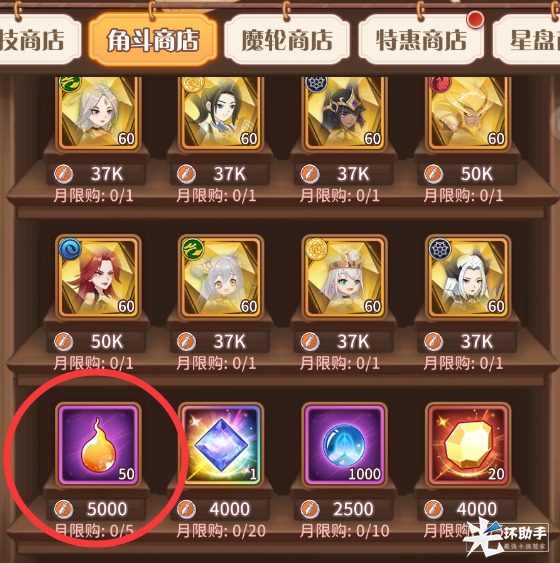 月限购5次,每次花费5000角斗币,角斗币从角斗场获取