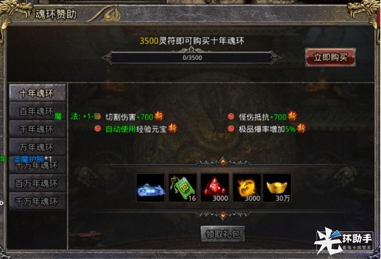 3. 充值赞助特权获得灵符+红包回收的灵符+参加活动送的灵符,只管买魂环。魂环能抗能打,即可快速度过前期。然后可去打高级地图获得更多的混沌神石。