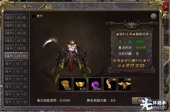 1、每个玩家每天有3次挑战福利地图的权利。获得首领归属奖励或者参与奖励时扣除1次奖励次数,每天0点恢复3次。