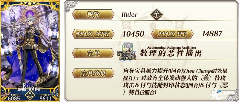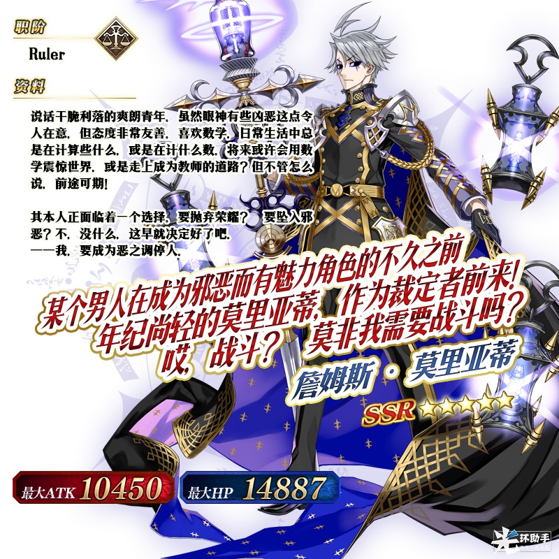 ※以上「★5(SSR)詹姆斯·莫里亚蒂(Ruler)」的圣肖像为灵基再临第2阶段。