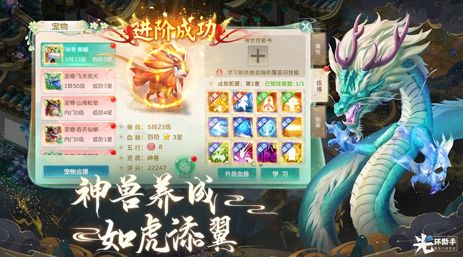 在宠物养成突破过程中,还会出现形态的变化升级,玩家可以体验到多形态的宠物系统,多维的回合策略,局内切换宠物战斗,巧妙利用独特属性制敌。角色大屏技能,配合华丽的动态特效,秒杀全场!