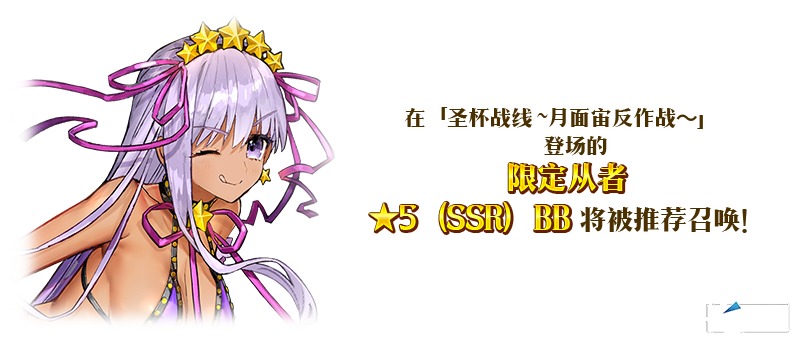 限时活动「圣杯战线 ~月面宙反作战~」的相关限定从者「★5(SSR)BB」将被推荐召唤!