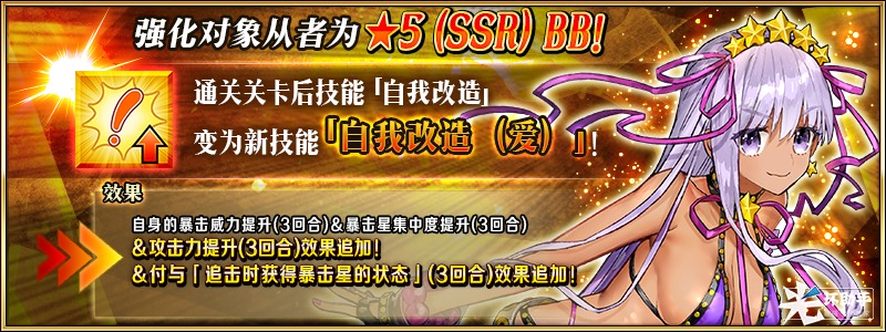 强化「★5(SSR)BB」的特别关卡「从者强化任务」将在迦勒底之门中作为常驻关卡追加。