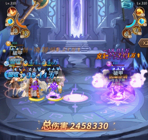 圣罚大祭司召唤心中之神降临于世,对全体造成魔法伤害,驱散敌方【增益】,根据伤害总量百分比为我方全体回复生命,并给予敌我双方【特殊印记】:携带印记的敌方将承担攻击力降低/受到伤害增加的减益;携带印记的友方将获得暴击率提升/免伤提升的增益。