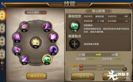 排山倒海:惊涛骇浪般的攻击,短时间内发出多道气劲攻击目标,造成大量伤害。瞬发技能,冷却时间是15秒。逍遥攻击最高的技能,应该也是目前所有职业中伤害最高的技能。