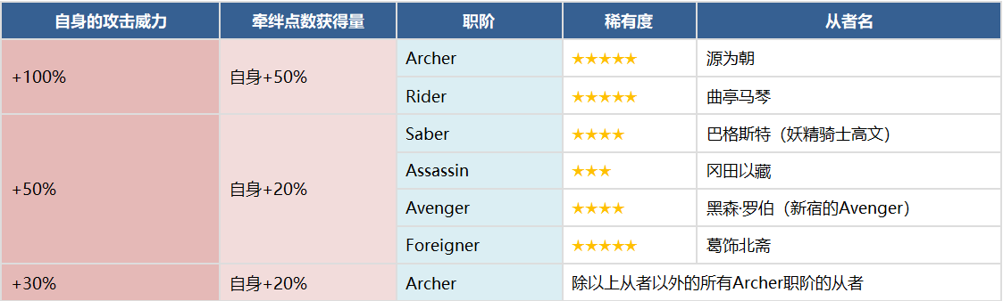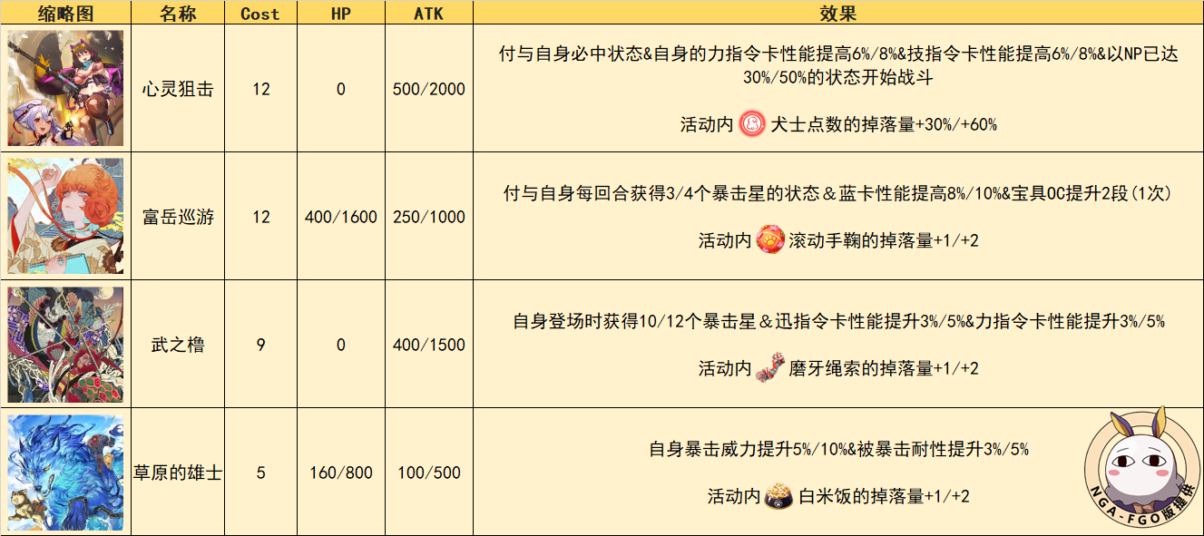 《Fate/GO》【南溟弓张八犬传】活动加成canglan097发布于 2023-06-28活动加成礼装 活动加成从者 本期活动中曲亭马琴有100%倍卡+50%羁绊加成,冈田以藏 黑森罗伯 葛饰北斋 巴格斯特有50%倍卡+20%羁绊加成,其余所有弓阶从者有30%倍卡+20%羁绊加成 作者:canglan097@nga https://bbs.nga.cn/read.php?tid=32500535