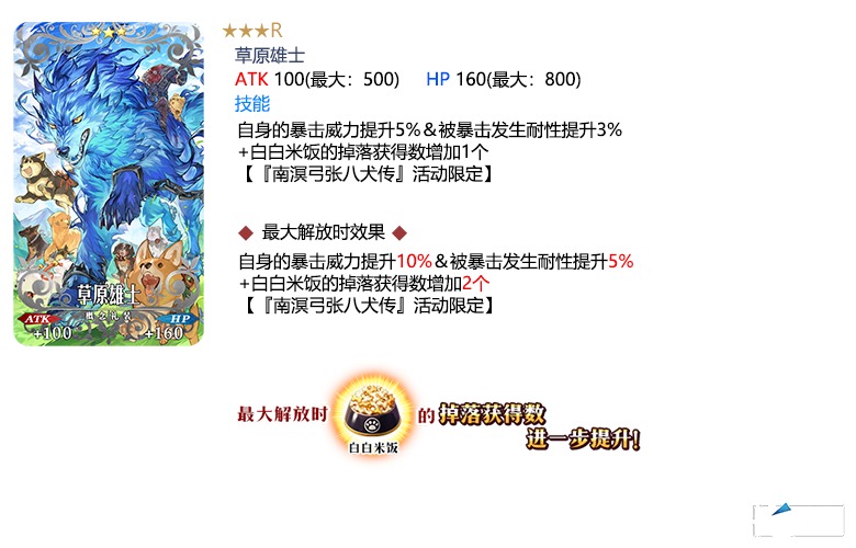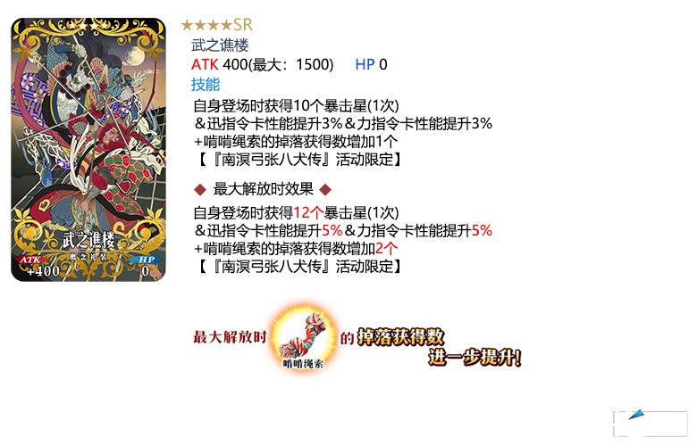 装备推荐召唤对象的3种限时概念礼装,在限时活动「南溟弓张八犬传」中活动道具的掉落获得数将提升!