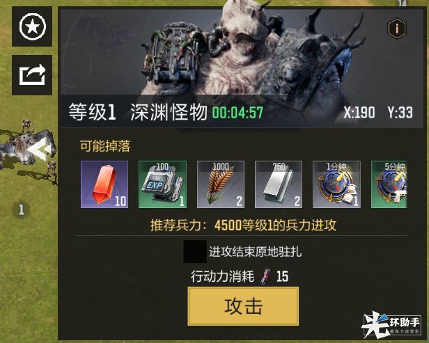 《星骸骑士》新手攻略 | 打野伊辛贝露发布于 2023-07-09在需要提升英雄等级时,前往打野是个不错的选择,指挥官可在大地图通过搜索面板搜索野怪并出征攻打。推荐每支队伍都上阵一个打野英雄以增加对野怪伤害,提供击杀野怪经验加成。每击杀一次野怪都会消耗15行动力,多支队伍打同一只怪物可获得多份奖励,还能快速消耗行动力。队伍战斗胜利后,将计算英雄增加的经验值并获得道具掉落,也可在战报详情,查看英雄释放技能伤害。