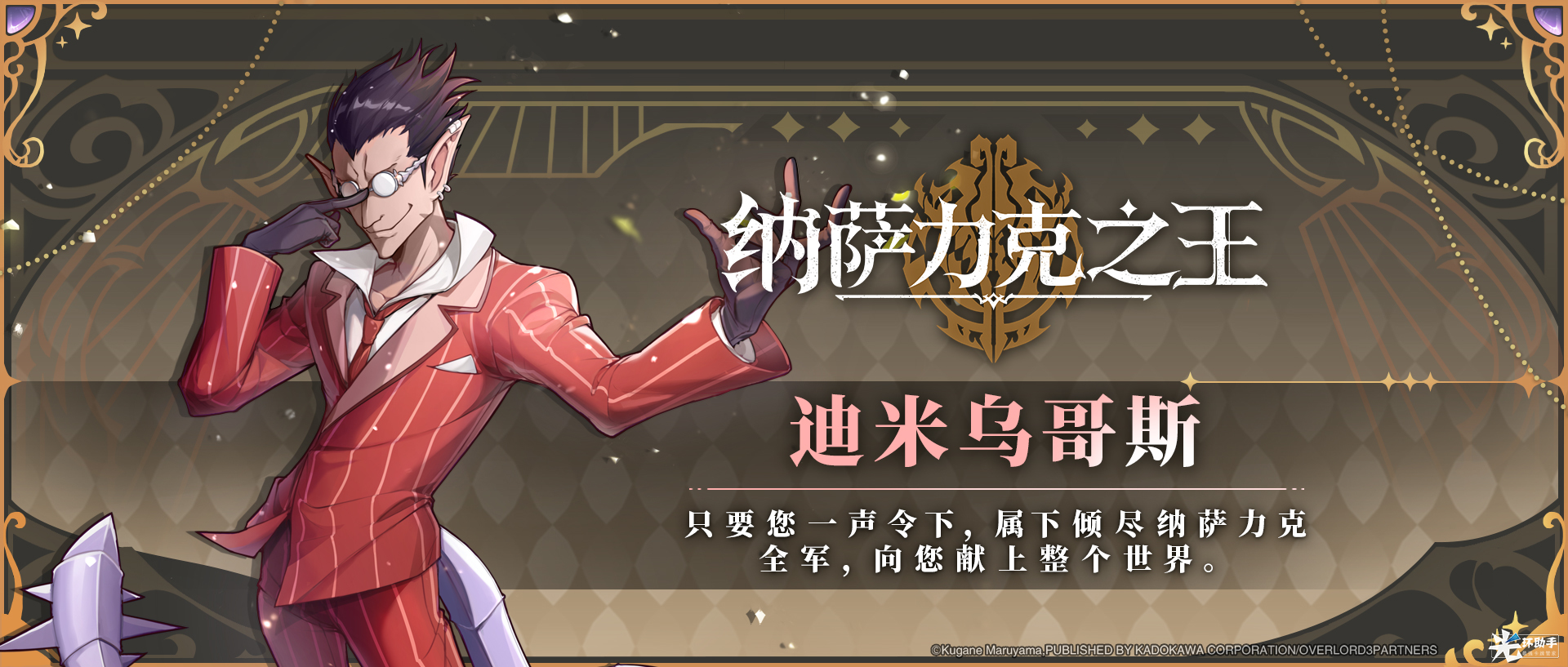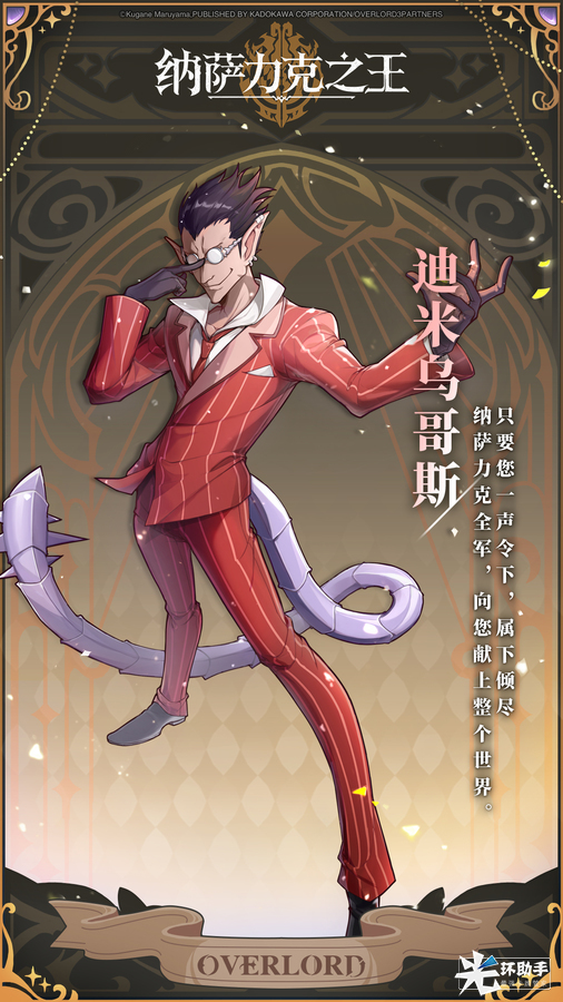 今天给大家介绍的是OVERLORD正版授权手游《纳萨力克之王》将会出现的角色——迪米乌哥斯, 还有其他大家熟悉的在动画中出现过的角色也会在游戏中出现噢!大家敬请期待~