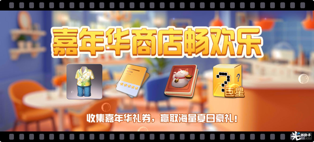 通过参与嘉年华【冲浪表演赛】【艺人大比拼】【竞猜齐欢乐】等活动获得的嘉年华礼券,可以在活动商店种兑换全新的夏日时装、巨星合同、巨星手册、收藏证书、助理卡、剧本卡、金币等众多奖励