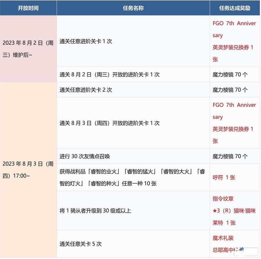 ※根据主线关卡的进度,有可能出现「7周年纪念限定任务」无法完成的情况。