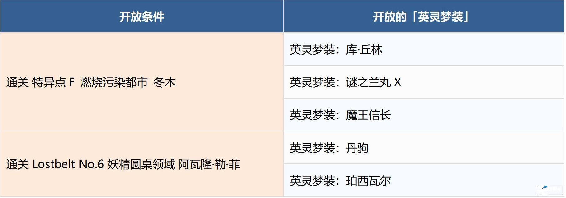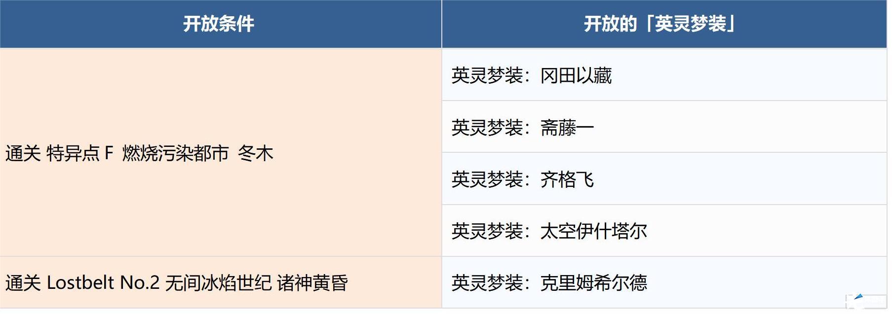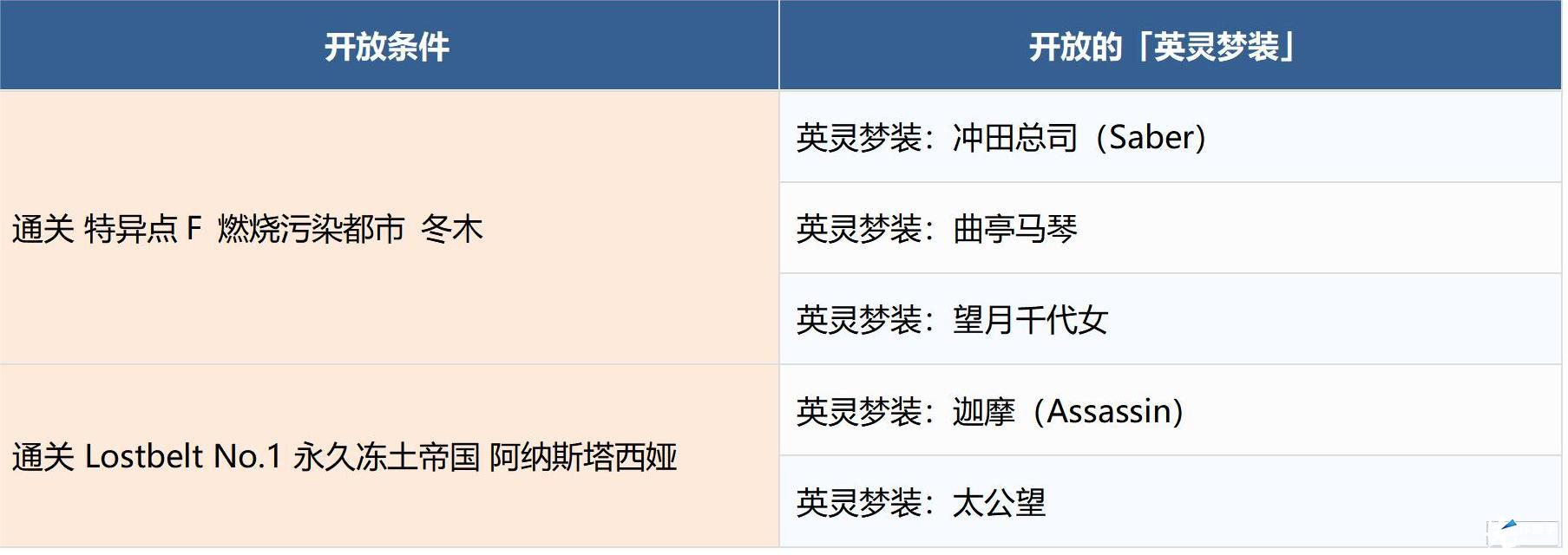 未通关相应章节则无法交换对应的限时概念礼装「英灵梦装」。