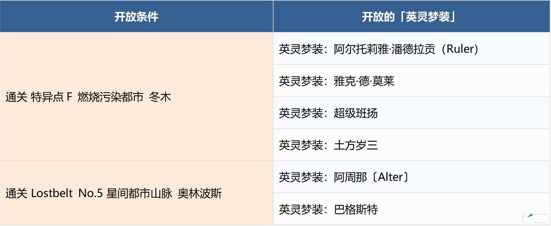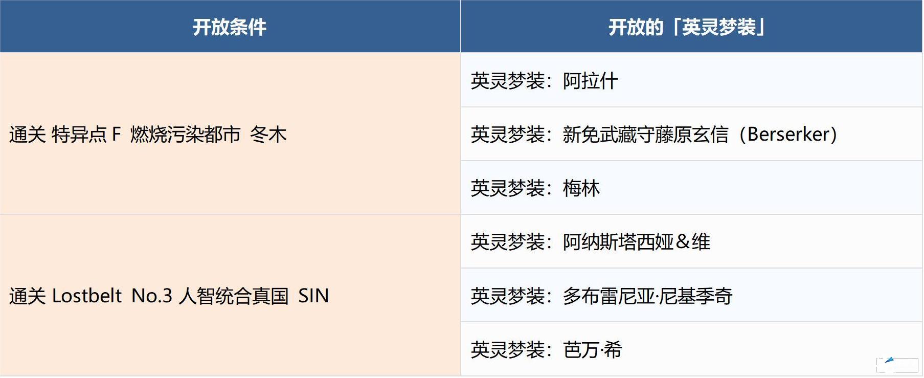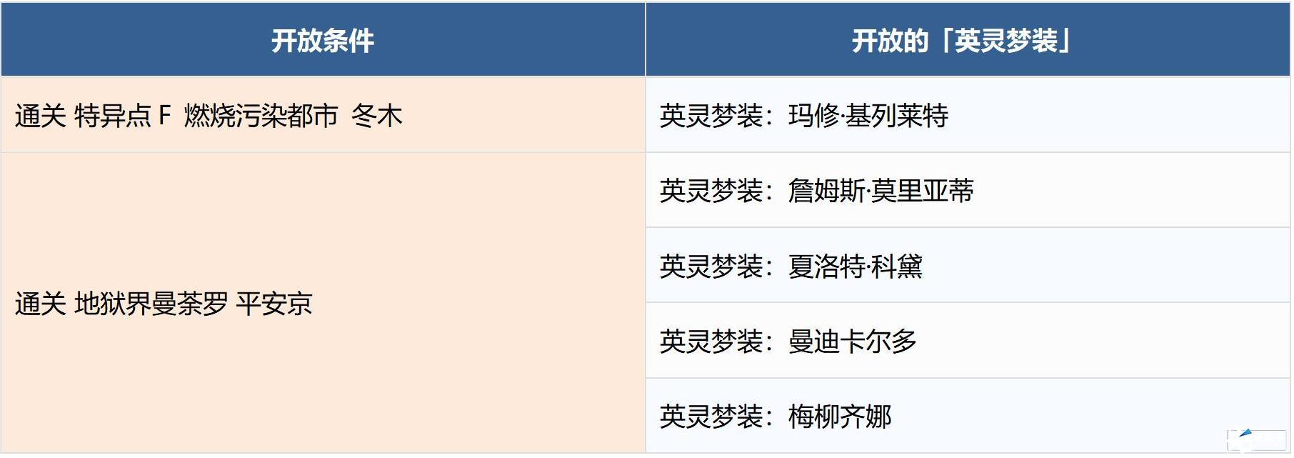 未通关相应章节则无法交换对应的限时概念礼装「英灵梦装」。