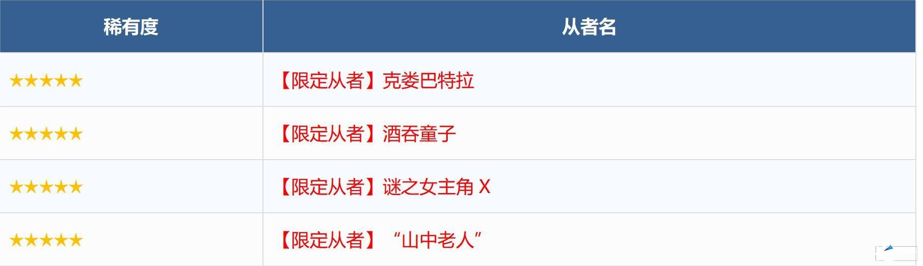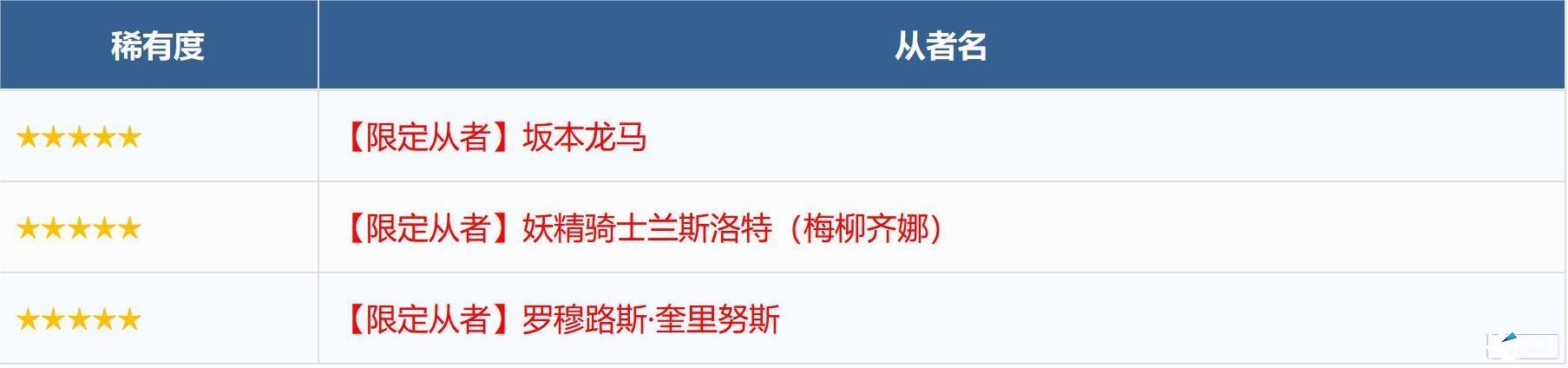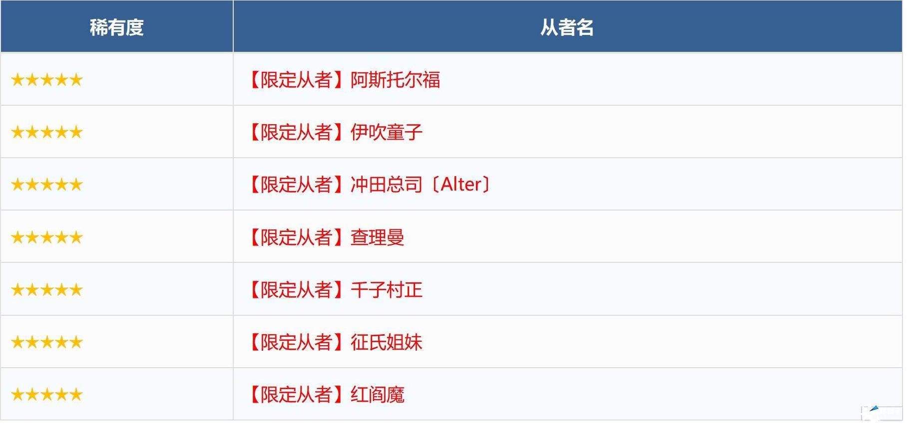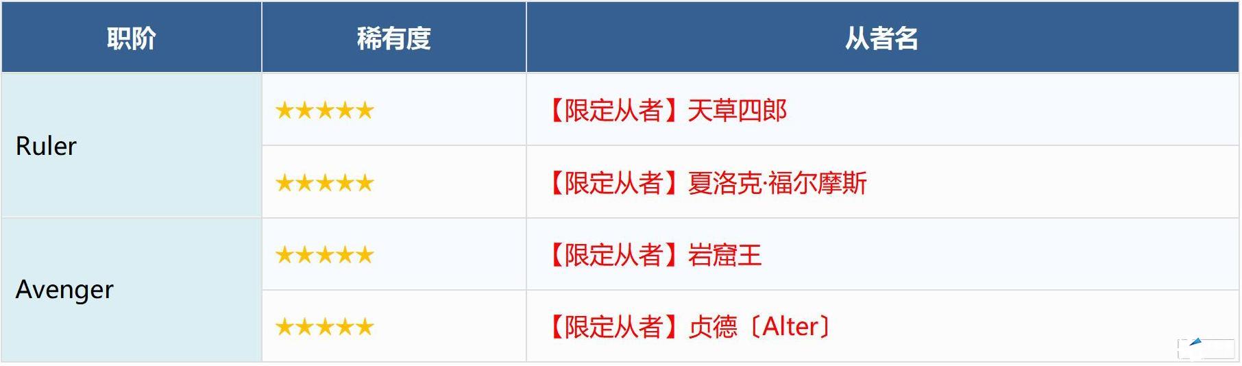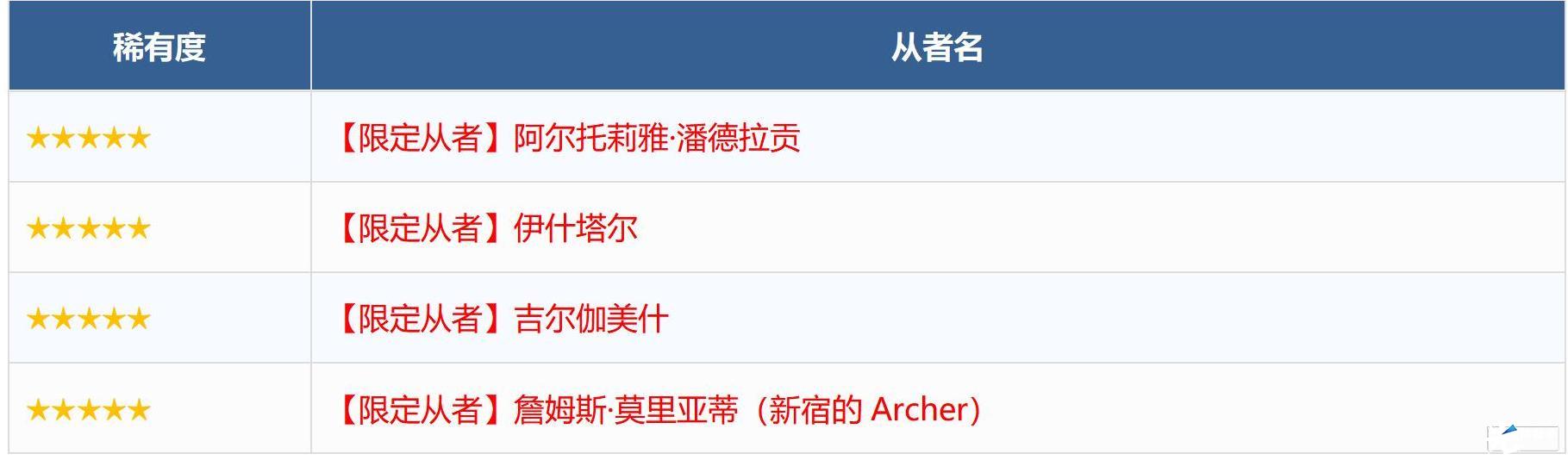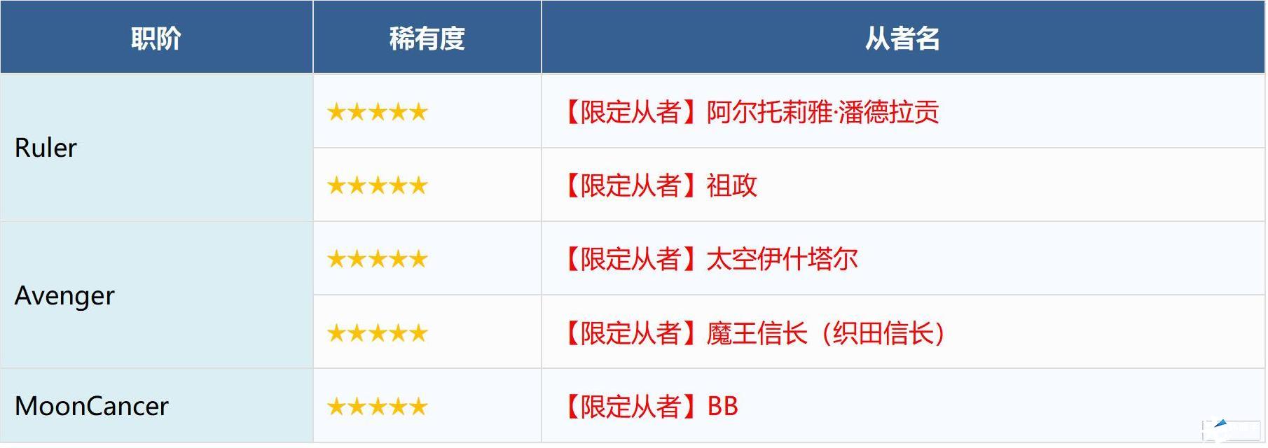 ※无法在本次召唤中获得以下从者,敬请注意。