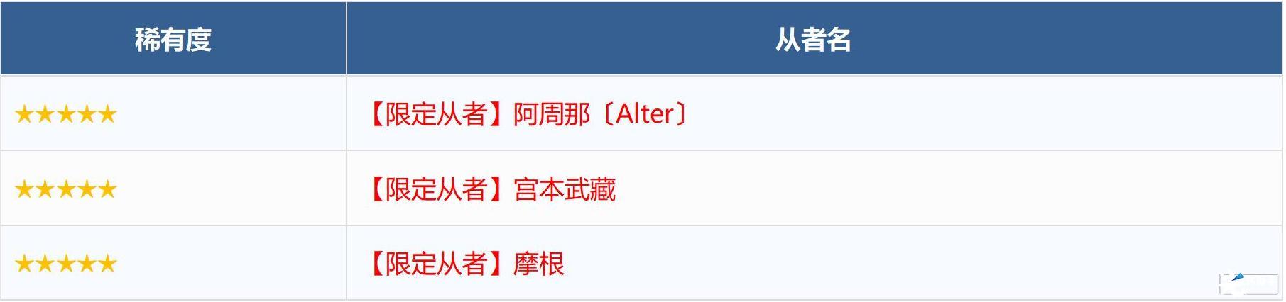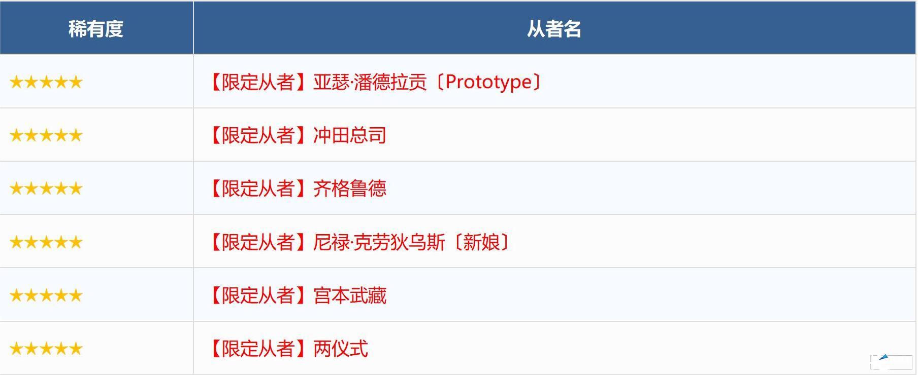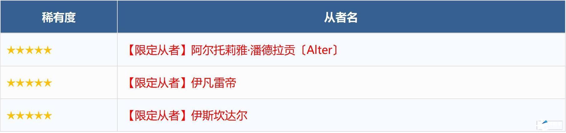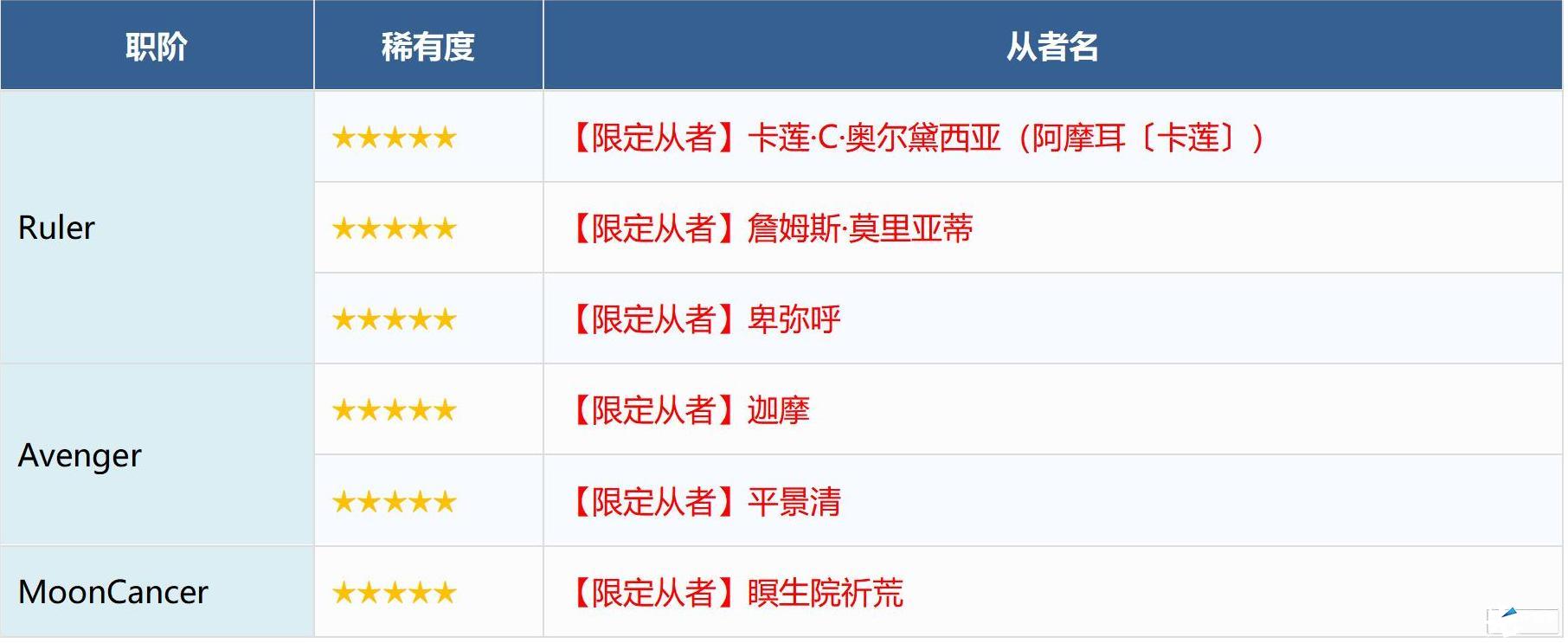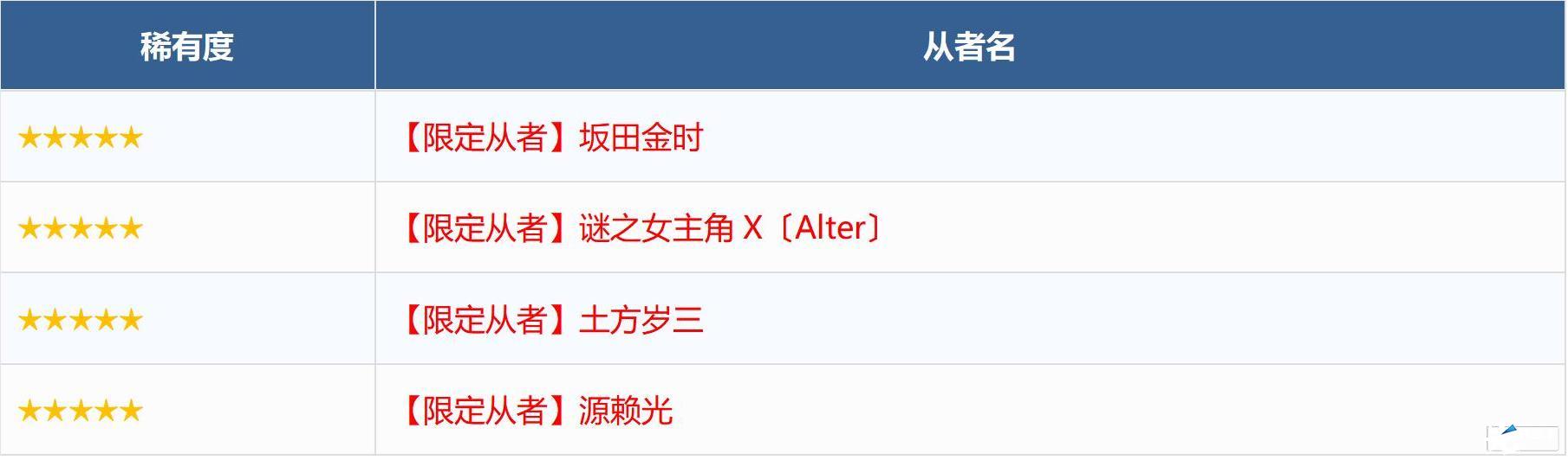 ※无法在本次召唤中获得以下从者,敬请注意。