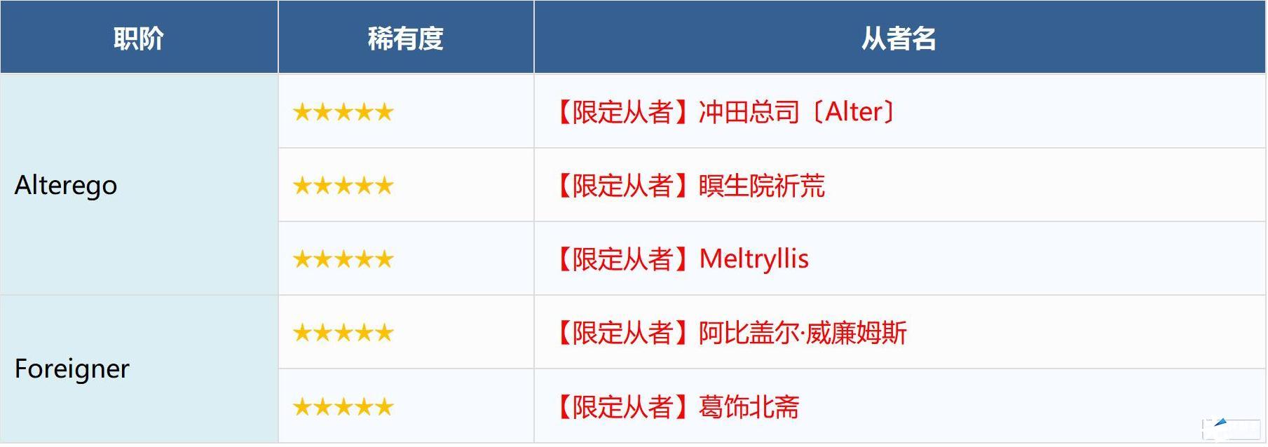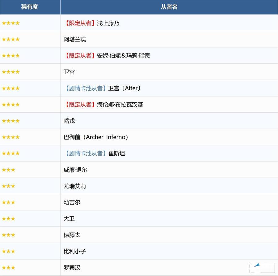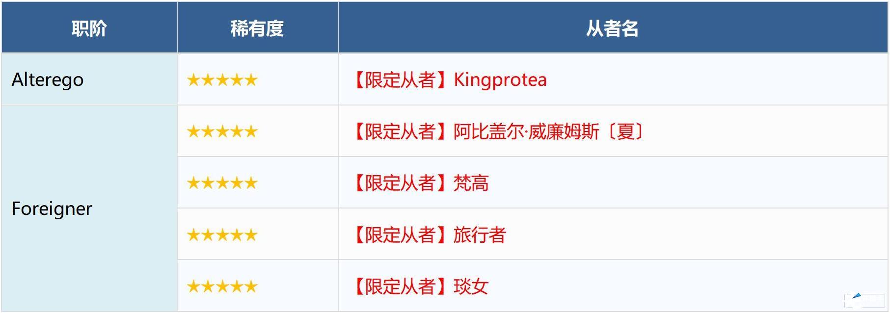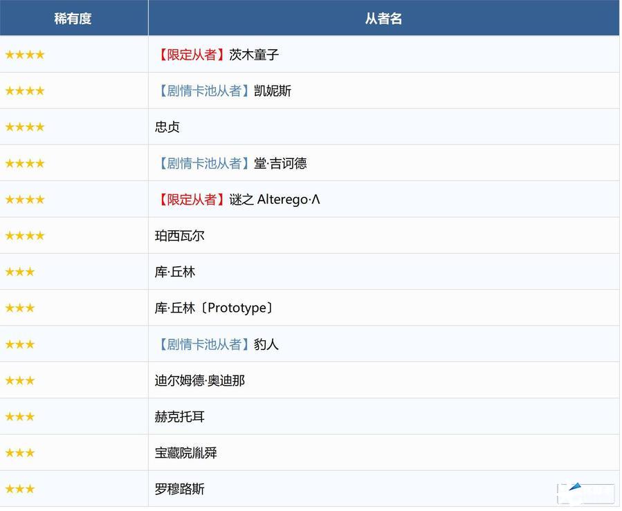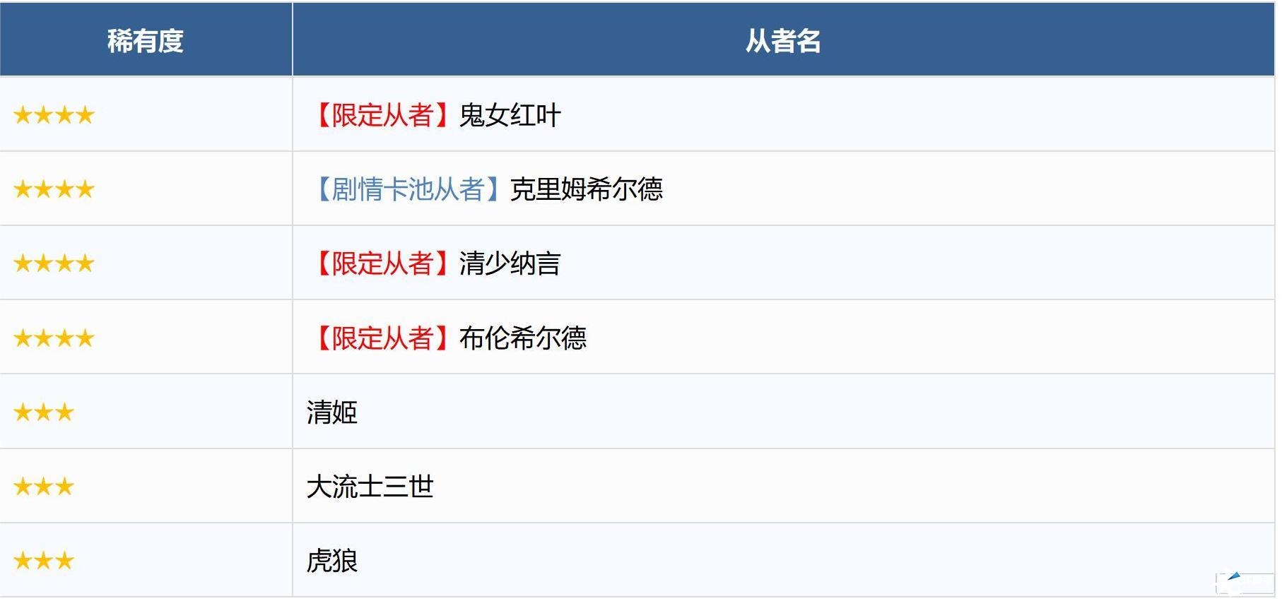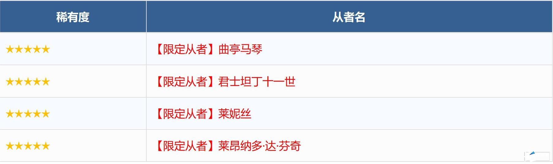 ※无法在本次召唤中获得以下从者,敬请注意。