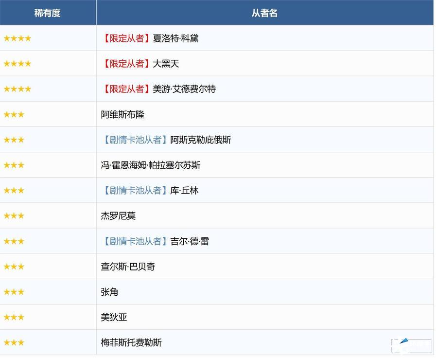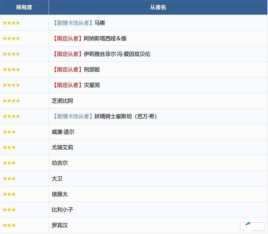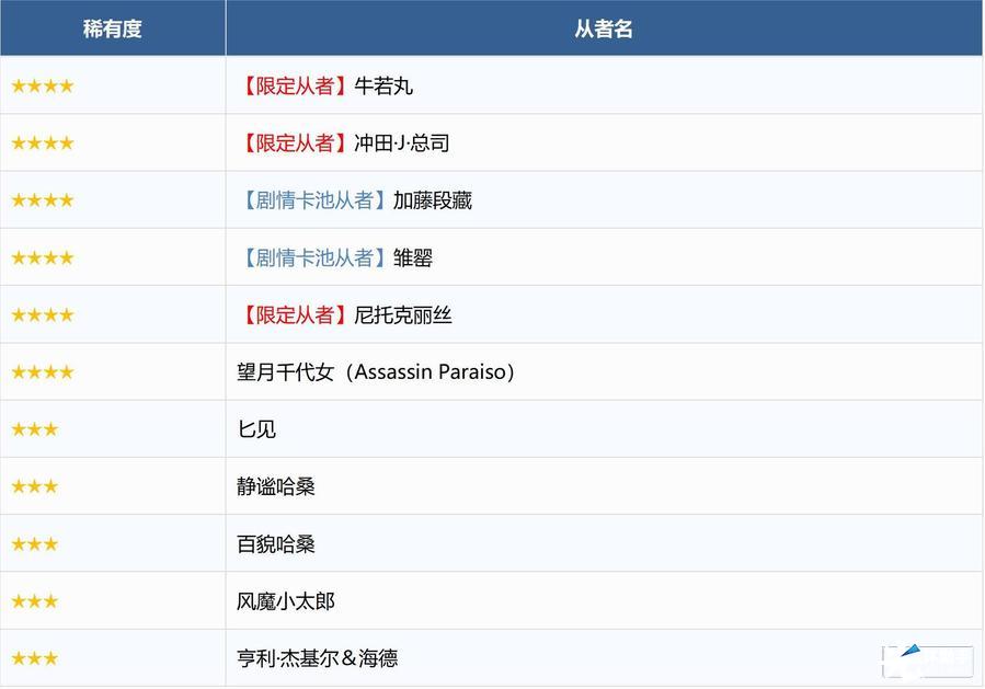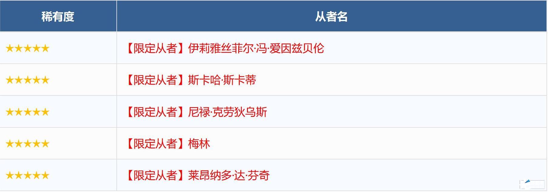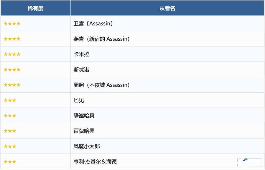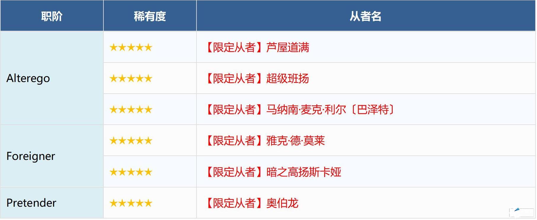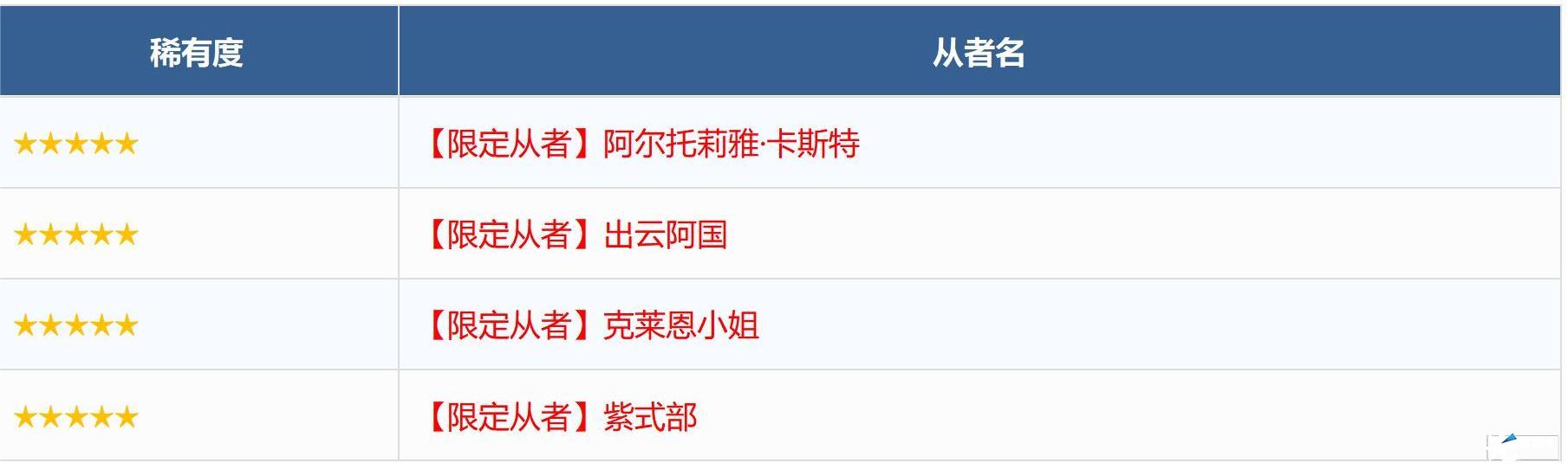 ※无法在本次召唤中获得以下从者,敬请注意。
