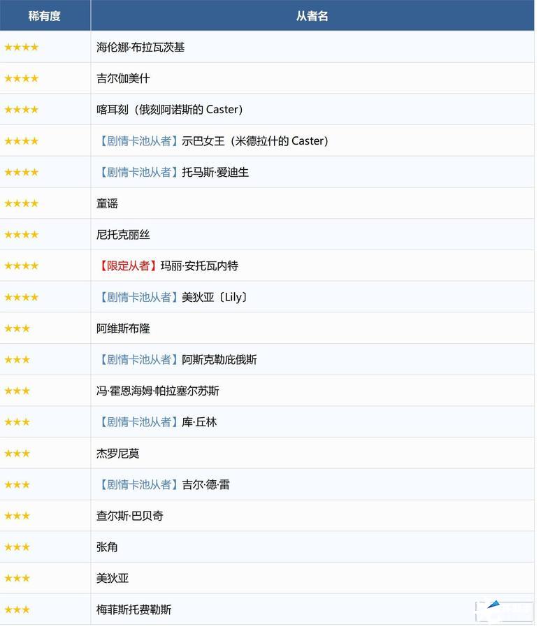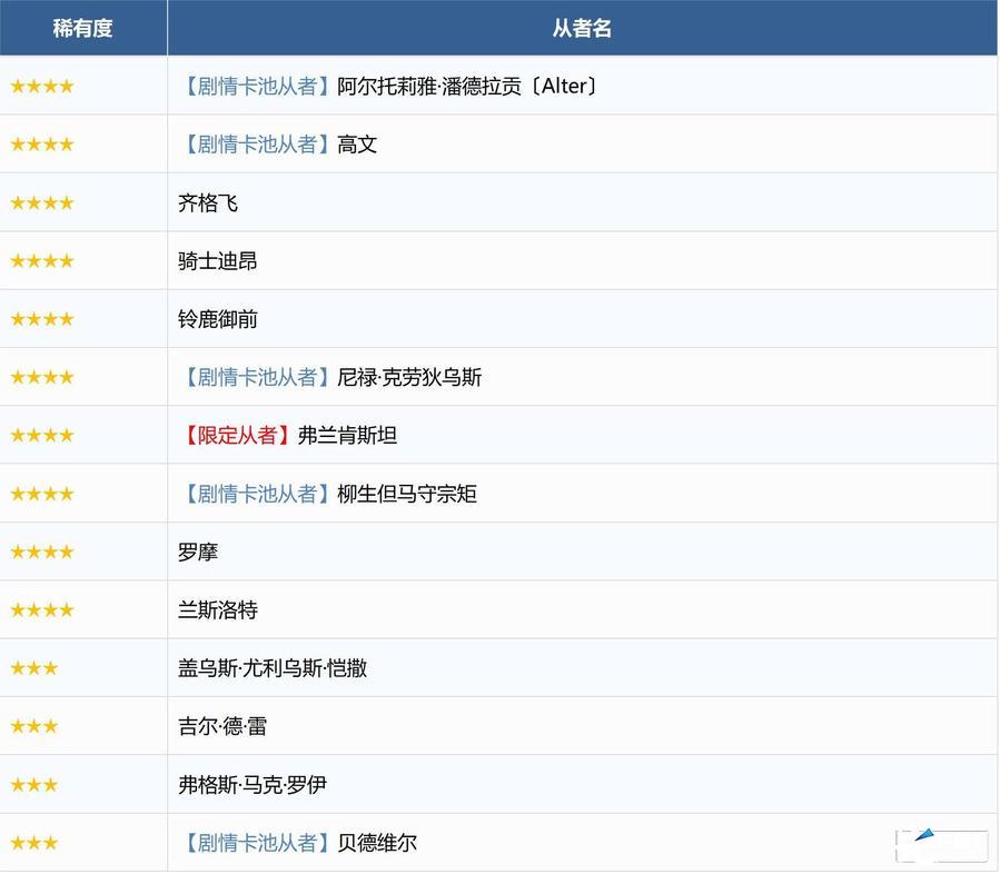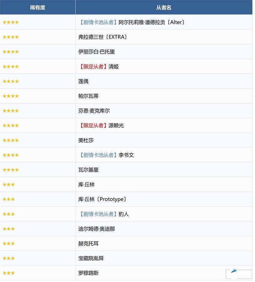 ※即使尚未通关对应章节,也可召唤随章节通关而追加的★4(SR)及以下从者。