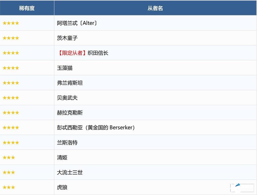 ※有关「★5(SSR)魔王信长(织田信长)」,「★5(SSR)织田信长」完成灵基再临第3阶段后名称变为「★5(SSR)魔王信长」。