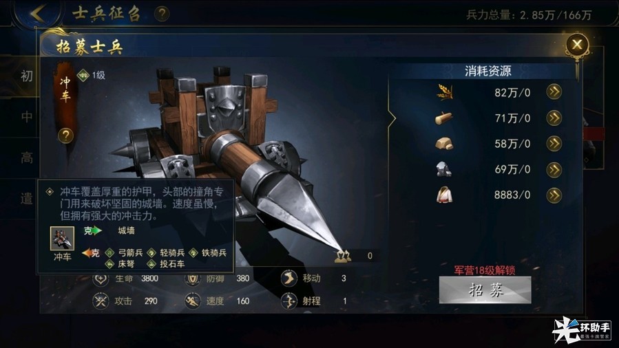 战争中,除了将领的强弱会影响士气的变化,兵种的不同也会影响战斗的结局。今天我就为大家带来游戏中冲车的介绍。