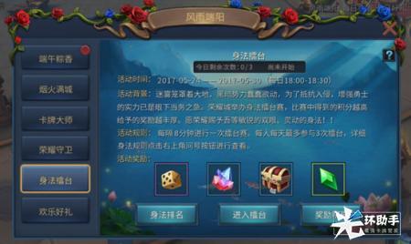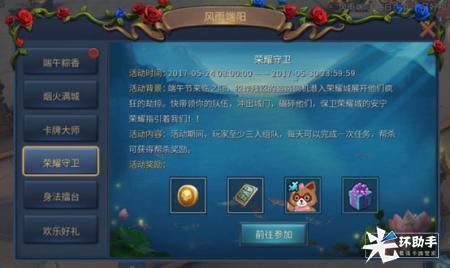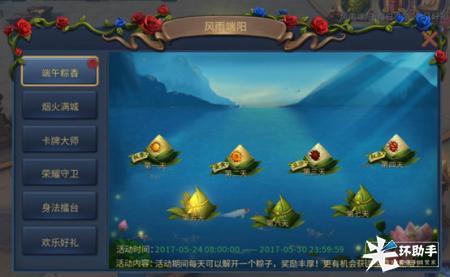5月24日08:00-5月30日23:59,风雨端阳节活动开启啦!丰富多彩的端午节活动将伴您度过一个欢乐的端午节。“端午签到”上线即领轻松大礼;“卡牌大师”快来试试你的运气;“荣耀守卫”、“身法擂台”快来展现好身手,把豪礼带回家;“满城烟火”活动,满城好礼随处拿;更有“欢乐好礼”限购礼包,超低折扣不容错过。快来和你的小伙伴一起玩起来吧!