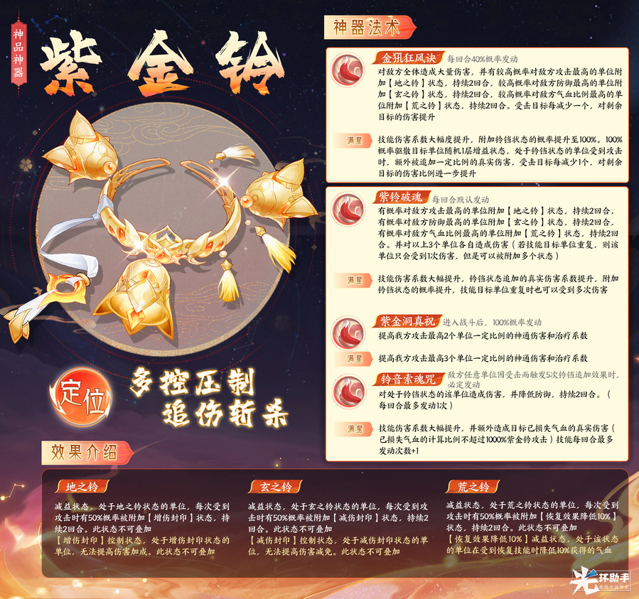 ●紫金铃:多控压制,追伤斩杀!