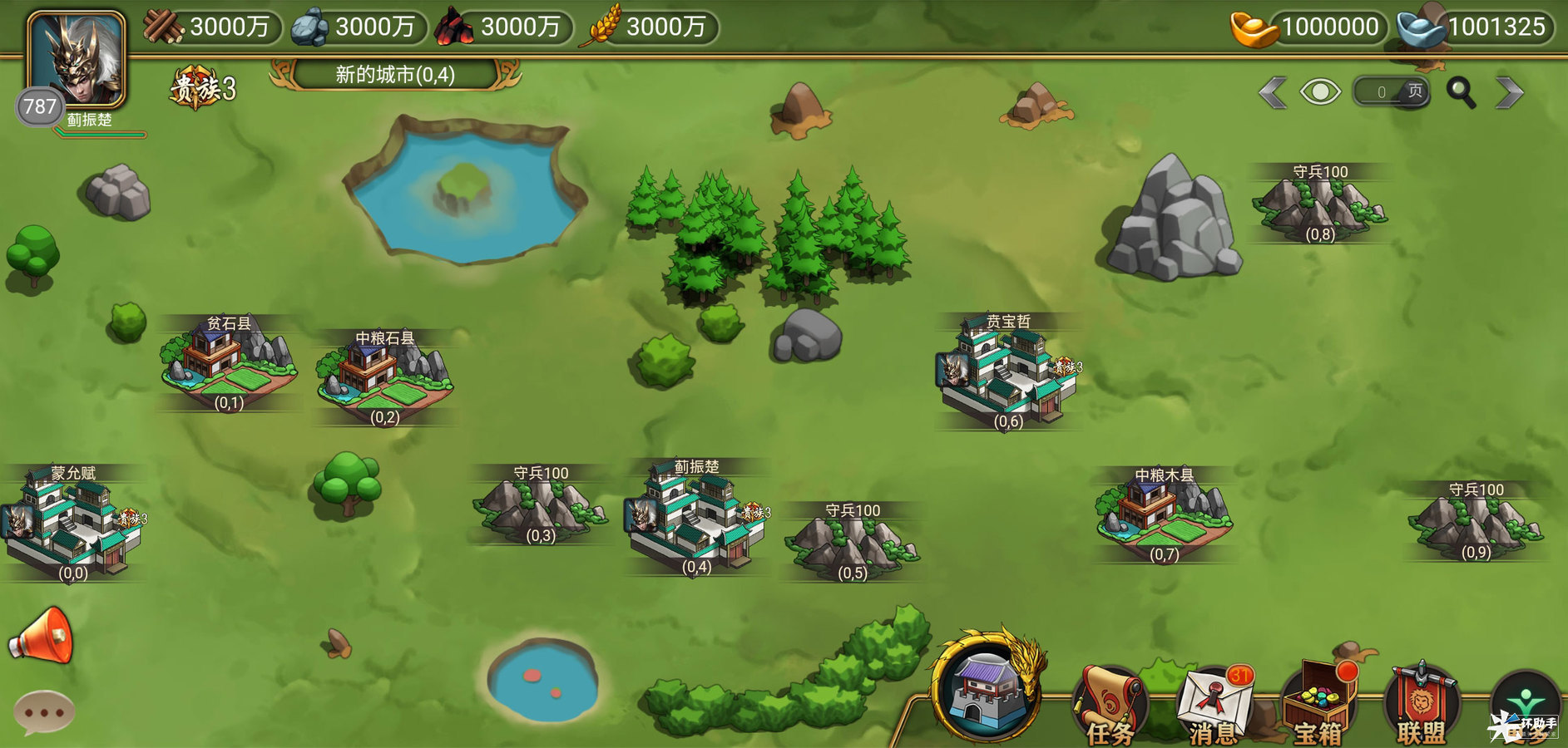 玩家可在荒山建立分城,或者使用迁城符将城市迁移至荒山位置。建造分城时可使用筑城兵,也可以使用开城令。使用筑城兵开城需要耗费一定的行军时间,使用开城令可以立刻建好分城。