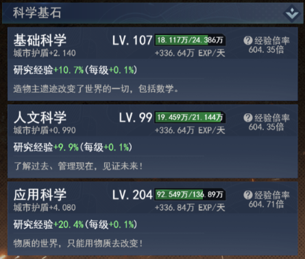后面我们就需要研究职业技能,移动城市原理,投资,大型机械科学都需要学到1000级以上。这个时候我们需要将时间分配研究减为0,工作拉满。等到工作-机械驾驶-全地形开采师解锁,这个时候我们就可以靠理财收入生存。吃好住好雇佣好,把雇佣减去的时间在单独加在研究上。这个时候就可以把工作留个4个小时左右,剩下的时间着重去研究。科学基石增加研究经验,当科学基石里面的研究经验都研究到2000级左右,再去研究武器。这个时候就可以开始你得战斗生涯了,分享到这吧,有别的建议的大佬可以踊跃提出来哈。