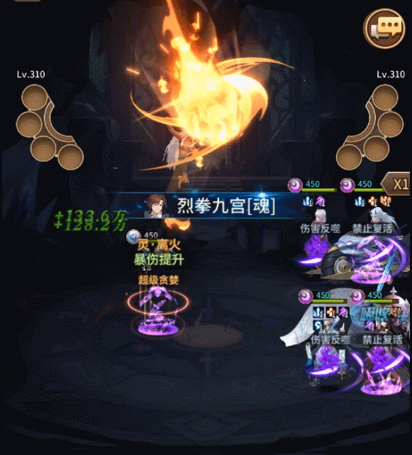 当处于恶魔形态时,技能效果更改为:莫凡引火焰包裹双拳向敌阵冲刺,对前中排全体造成伤害并概率施加【受疗下降】,随后地脉喷涌出火焰,对全体造成溅射伤害的同时,更高概率附加【降低闪避和攻击】、【灼烧】;自身获得【火灵护盾】、【精魄】。