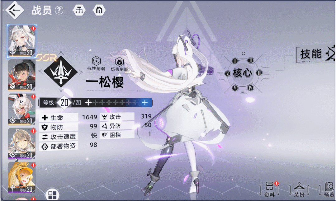 在游戏中,你会看到经典的白发、双马尾、无口美少女,搭配机械义肢,不仅符合游戏整体的星际机甲风格,也完美表达了角色的战斗属性与风格。