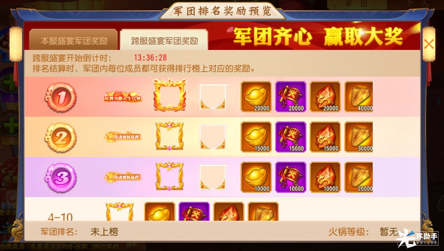 参与条件:开服时间>7天,以军团为单位进行