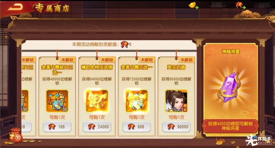 在个人专属商店中,只要主公在本次活动中个人获得的功绩达到指定条件就能解锁稀有资源的兑换,九霄装备、金色宝物、限定武将英主刘备,千万不要错过呀!