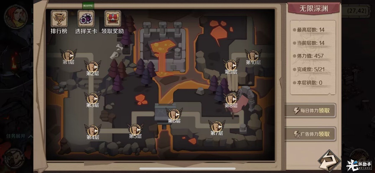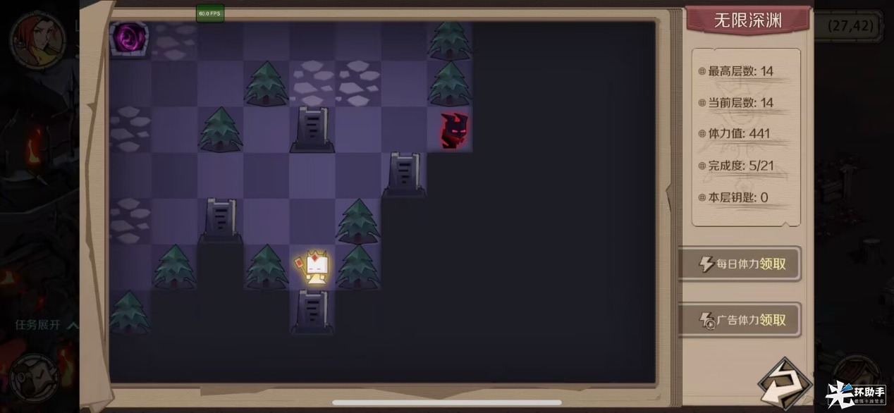 深渊挑战副本类似于迷宫,通过打败格子的野怪获得经验,材料,宝石碎片。挑战深渊副本需要消耗体力值,体力值每天都会恢复,同时还可以通过每日体力领取和看广告获得免费体力(观看广告获得体力暂时还未开放)。游戏前期,深渊挑战是必不可少的一个去处,能够获得大量的经验,提升技能等级的阅历,铜币,提升战斗力的宝石碎片,同时每日奖励也能领到一定的材料。