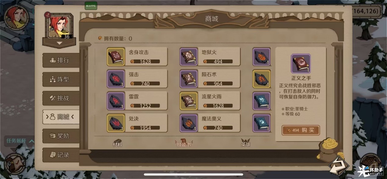 大家可以看到,上面的是擂台赛可以兑换的一些高级材料、高级技能书以及特有的人物英雄,这些都需要勇者金币进行兑换,金币的获得主要是依靠PVP的段位,需要玩家去勇敢挑战别人。如果前期战斗力较低,可以考虑每天简单打一把,摸一下,依靠积分排名获得金币,积少成多。当然,通过不断的PVP,可以提升人物的战斗力、冲击更高的排名段位、获得更多的勇者金币。同时不要忘了调整自己的队伍阵型,搭配出更加强劲的队伍,提高自己的防守能力(排名高,别人可是会用放大镜研究你的阵容,以你为标杆,打败你!)