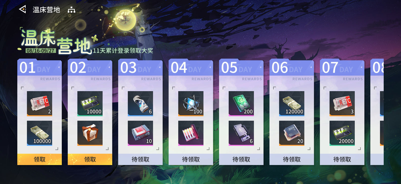 活动期间,链尉官连续登录11天,可以领取活动专属“温床营地”补给,获得“特殊链接许可”“源晶辉锭”在内的丰厚奖励!