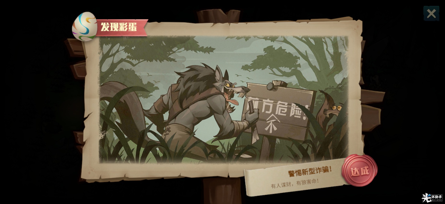 获取:在丁字路口路过时,出现对话框“陈旧的路牌”,点击“仔细查看”,即可看到路牌“前方不危险”右下角有一片被污渍遮挡的部分,用手指擦除遮挡,即可显示”国家反诈中心“APP二维码,彩蛋完成。