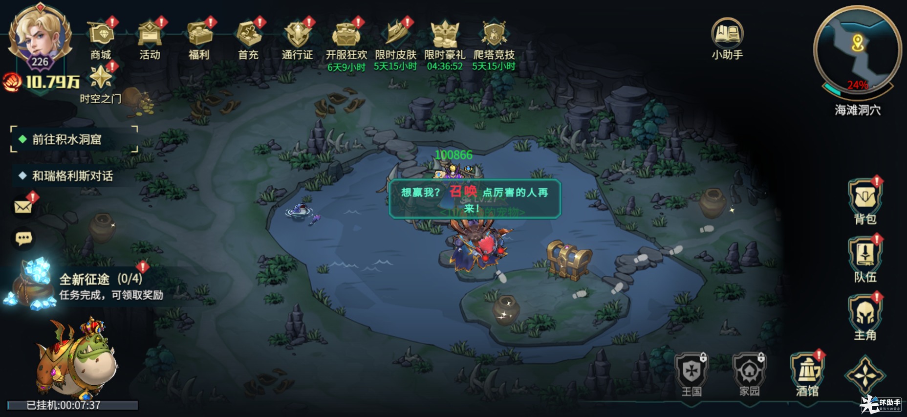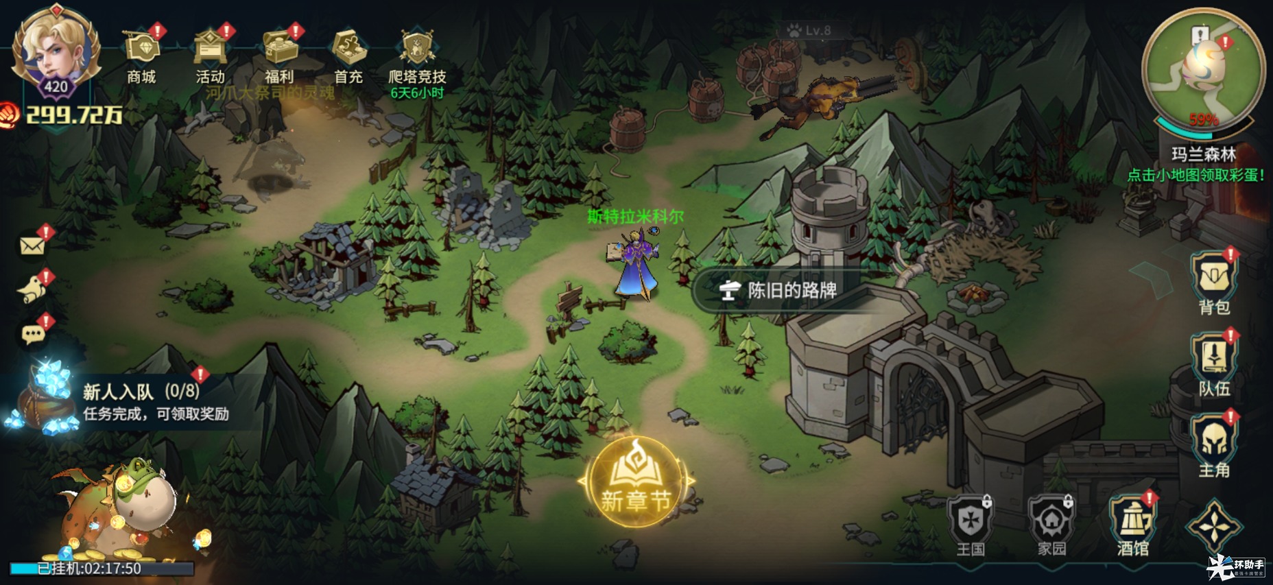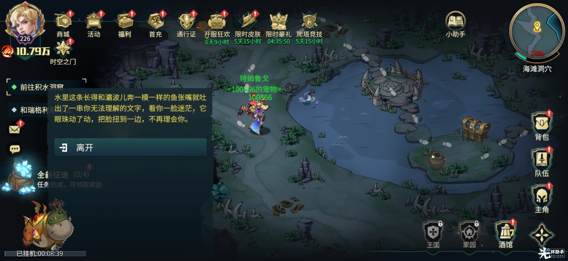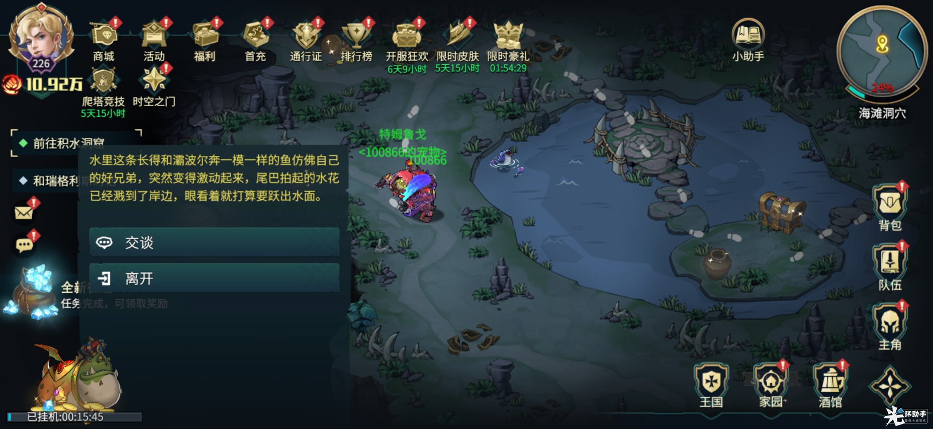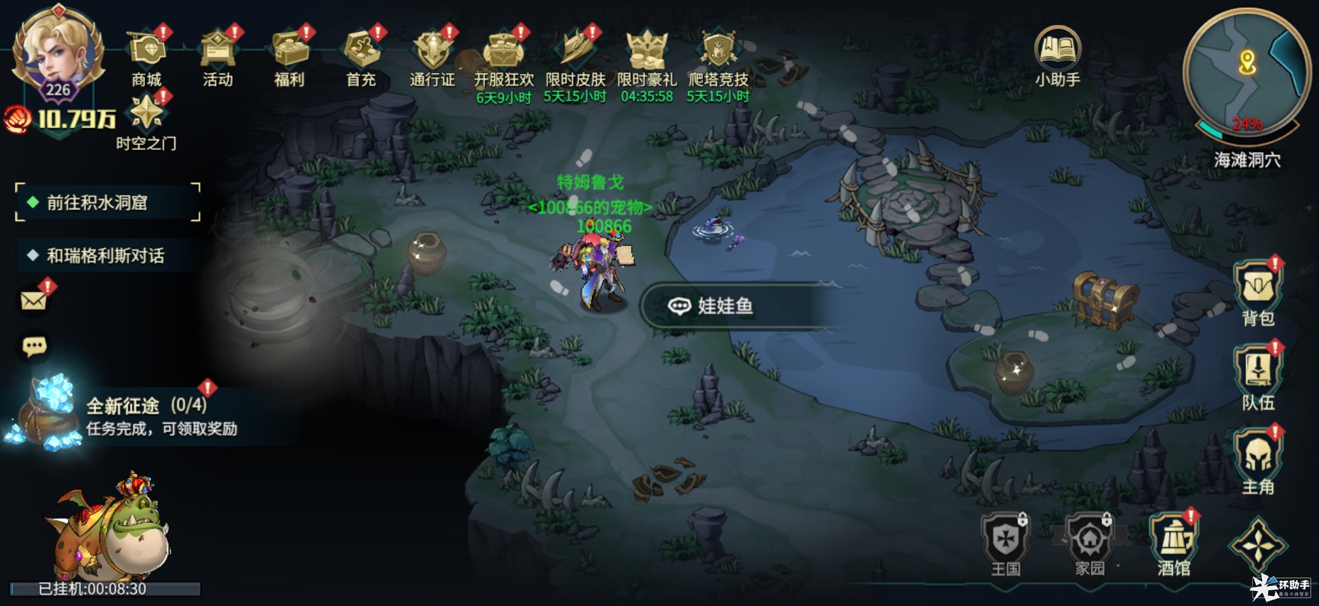奖励:获得宠物修理大师特姆鲁戈(鼓舞I:全体我方单位伤害+1%)
