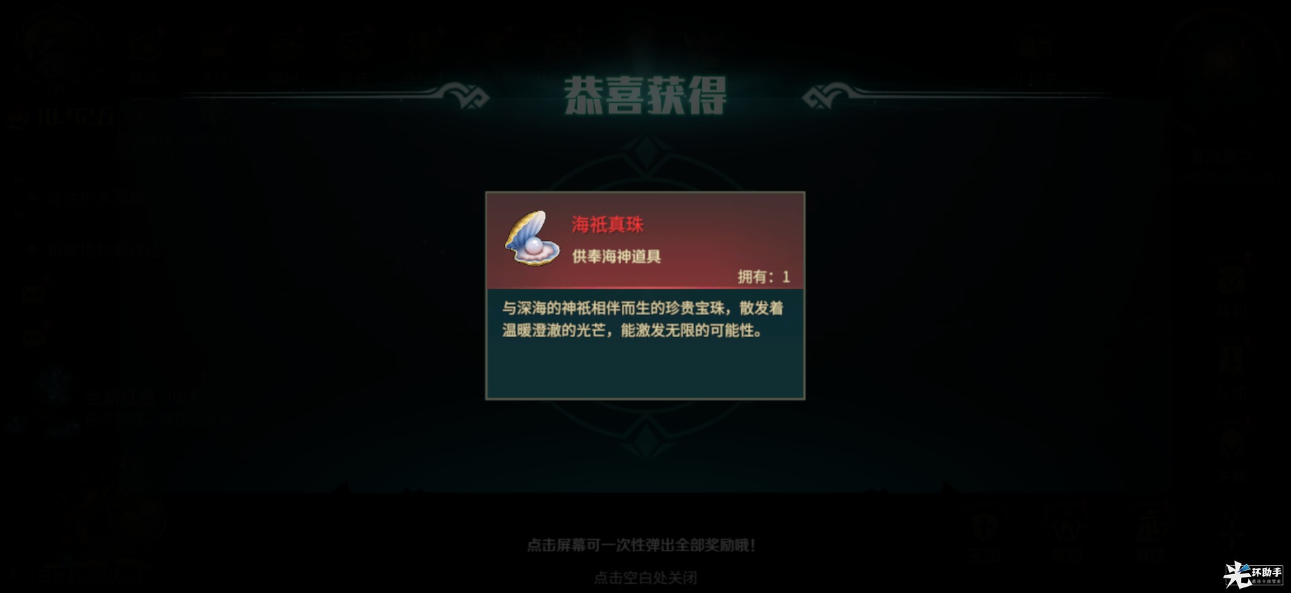 奖励:道具海袛真珠,宠物碧波囚灞波儿奔(鼓舞II:全体我方单位最大生命值+1%)