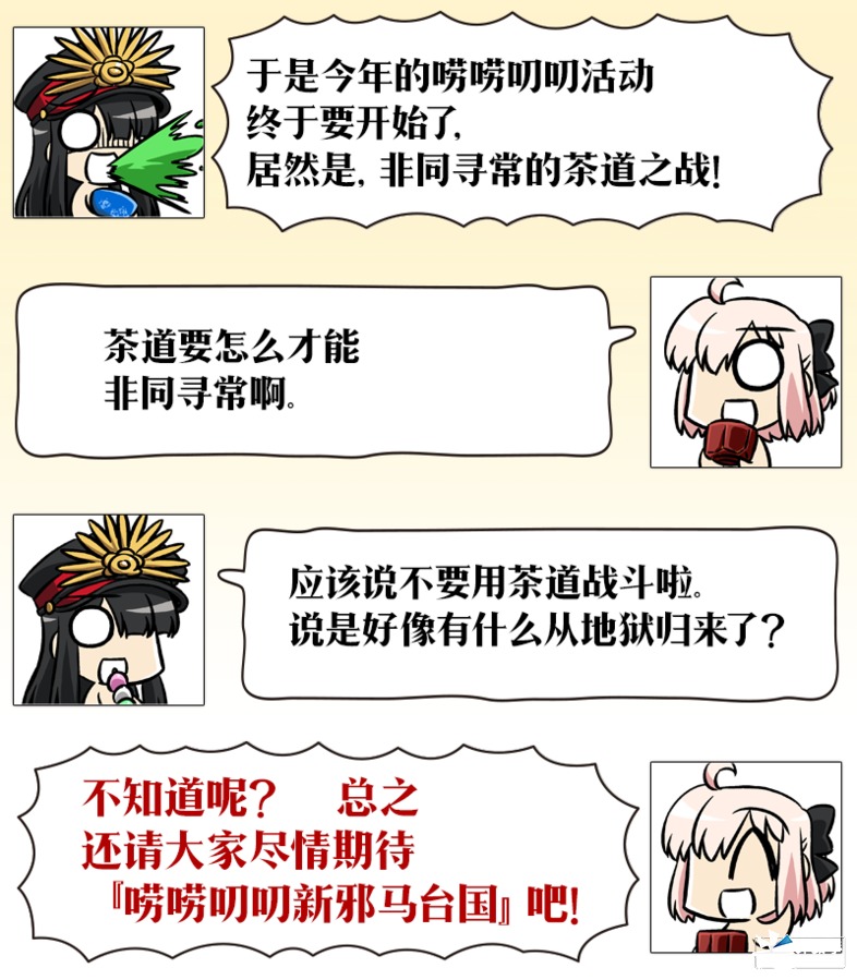 「Fate/Grand Order」官方网站的主页和迦勒底映像中,将公开限时活动「非同寻常茶道之战 唠唠叨叨新邪马台国 从地狱归来的男人」的TVCM,敬请观赏。
